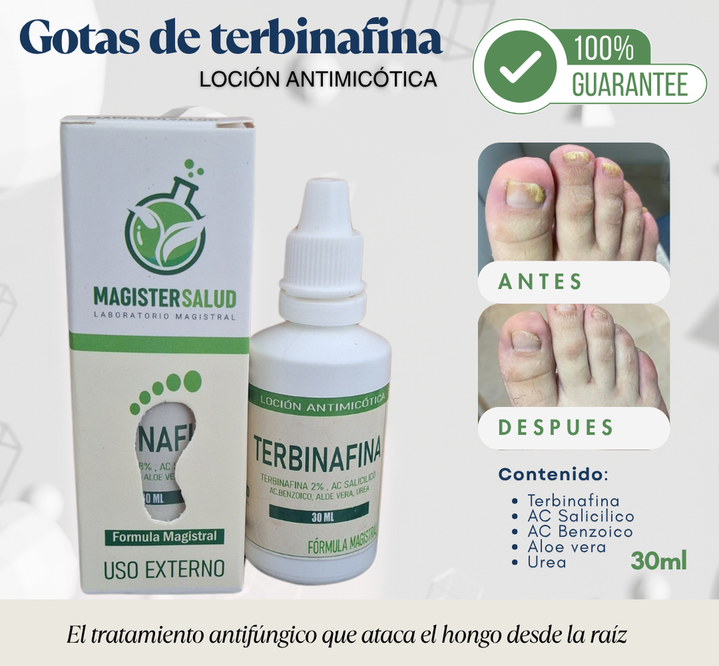 Con solo una gota diaria de Terbinafina puedes comenzar a revertir el daño desde la primera semana.